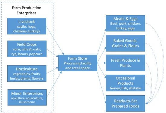 Direct marketing of value-added products is a strategy for improving the financial viability of small-farm businesses, widely promoted in the United States by state cooperative extension services [1,2], state governments and legislation [3,4], non-profit organizations [5,6], federal government agencies [7,8], and academic researchers [9]. Farms that can market and sell directly to consumers have opportunities to receive higher prices for their products without losing part of the retail value to wholesalers or other intermediaries. Farmers markets, farm stands, community-supported agriculture (CSA), and subscription-based arrangements offer ways for farms to sell products directly to consumers at retail or premium prices.