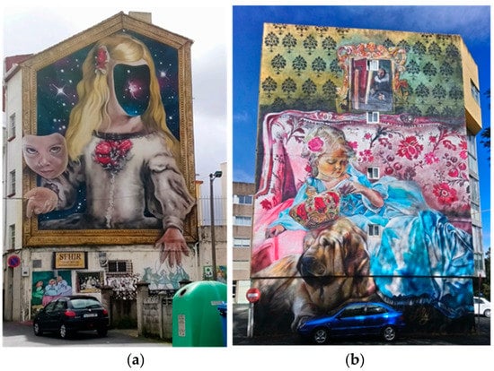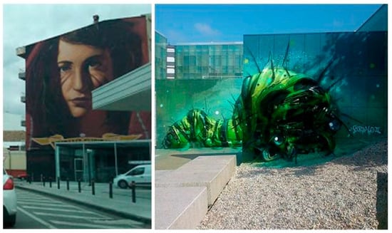 The festival takes place in early September, and the 2018 edition welcomed more than 100,000 visitors. Since its inception, more than 1200 artists have participated in it, some from Syria, Slovenia, Poland, Brazil, or Taiwan, which gives the neighborhood a universality. Along its streets, there are more than 300 pictorial works that can be enjoyed (Figure 6).