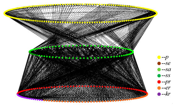 The complex network is chosen as the framework for the PSS modeling because its structural properties enable the exploration of the interactions between products, resources, and service activities. The mathematical characteristics of complex networks are very useful for analyzing the characteristics of complex systems. However, it is difficult for a general complex network to effectively reveal the multilayered or multidimensional relationships in a complex system when the scale of the system increases substantially. Many approaches have been proposed to enrich the representation of networks. Hypernetworks [47,48,49] are developed based on the definition of the hypergraphs to generalize the multidimensional relationships, in which multi-elements are connected rather than only two elements. Multilayer networks [50] are applied to describe the complex structures of systems, which include different types of relationships between their components. Originally, multilayer networks were proposed to express different types of relationships between one single type of elements in different layers [51,52]. More recently, they have been used to model other systems, including those with different types of elements. Omodei et al. [53] proposed a method based on the multilayer networks of citations and disciplines to assess the interdisciplinary importance of scholars, institutions, and countries. Additionally, Pasqual and Weck [54] introduced a multilayer network model integrating three coupled layers (product layer, change layer, and social layer) to analyze and manage engineering change propagation. Leng and Jiang [55] also offered a multilayer network model comprising processes, machines, and work in processes to assess dynamic scheduling in a radio frequency identification-driven discrete manufacturing system.