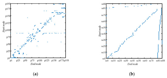 The in-degree and out-degree of in are denoted as and which are described by Formulas (7) and (8):
