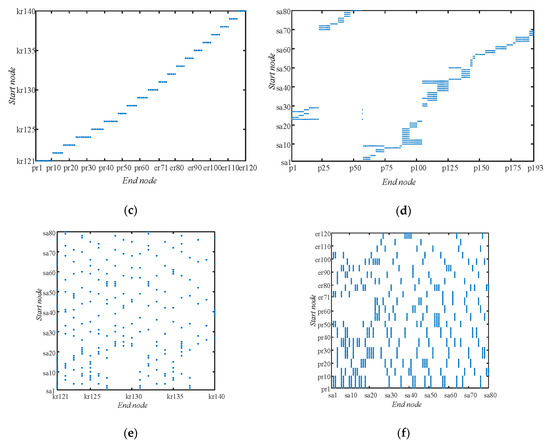 - The execution of service activities demands the resources be in corresponding specific kinds and quantities. If demands the resources whose type is , then , which denotes a directed inter-layer edge from to and the quantity demand is represented by integer weight . Otherwise, , . Meanwhile, only makes sense between and ; for other nodes, ;