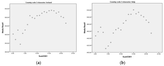 | Hungary | SumIC001 | Pearson C. | 1 | −0.283 ** | Ireland | SumIC001 | Pearson C. | 1 | −0.209 ** |