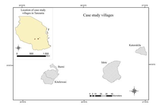 Location of the case study villages in Tanzania.