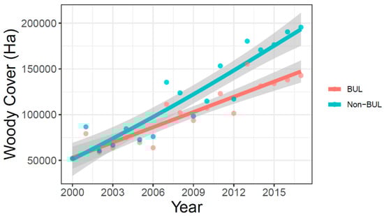 3.2. Trajectory of Woody Plant Encroachment within BULs