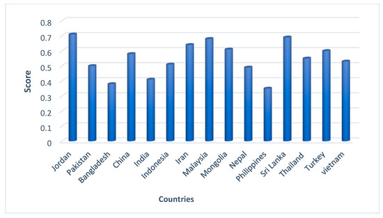 According to Figure 1, underline developing economies are passing through different environmental development phases compared to each other. Currently, a mixed condition is observed in this region in terms of environmental performance. Jorden has better conditions in this lineup, followed by Sri Lanka and Malaysia, while Philippine and Bangladesh are poor performers. The comprehensive set of indicators’ choices are similar to the work done by [57,58,59,60].