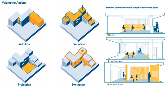 However the strategies of reuse hypothesize a partial reconversion to other uses and a certain number of interventions capable of restoring to this vast heritage a dimension of adequacy for the needs of local communities, taking into account concepts based on the relationship between architecture and contemporary pedagogy, as evidenced by the vast scientific literature that addresses the issue [54,55,56,57,58,59]. On the other hand, Montessori and Freinet in Europe and Dewey [60,61,62] in the U.S.A., to name a few, had already stressed the essential role played by physical space for qualitative learning—the space where one learns influences learning; not all places are the same.