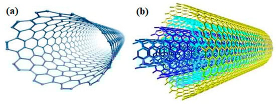 (a) Single-wall and (b) multi-wall carbon nanotube [].
