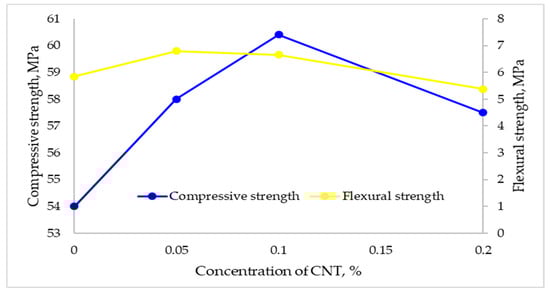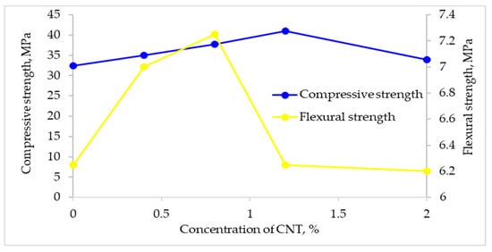The relation between compressive and flexural strength of cement paste with different concentrations of CNTs [].