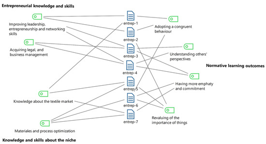 Knowledge and skills about the sustainable fashion niche refer primarily to the field of fashion and textiles, ranging from Mexican traditions, new sustainable materials to process optimisation. For instance, entrep-7 said: