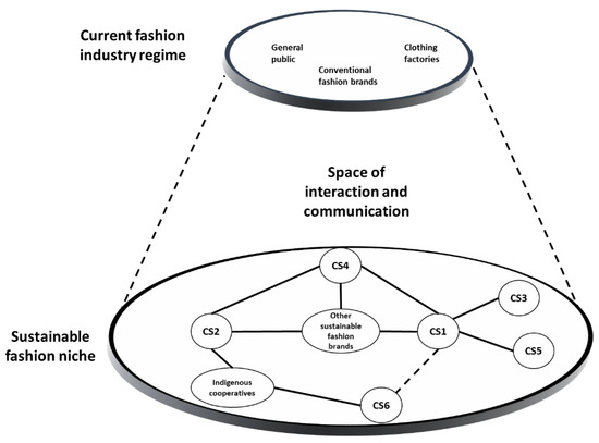 According to [31], a global niche is a worldwide community working on emergent topics by developing knowledge, practices, technology and policies in a specific area. Global niches emerge as a response to unsustainable socio-technical regimes, and they open up spaces for local niches and practices. Within the major economic activities all over the world, the current textile-clothing regime driven by a fast-fashion production-consumption model is one of the biggest and most complex industries in the world because of its diversity in products, role in the global supply chain and continuous innovation [40]. The textile supply chain comprises the design of the garment, the production of fibres, the supply of materials (yarns, fabrics, dyes, etc.), the manufacture of the garments, retailing, consumption and disposal.