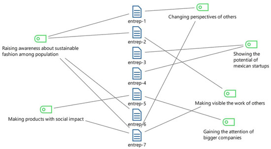 | Fue cuando descubrí que quería emprender con este proyecto, con este negocio, y realizar un cambio en la industria positivo con impacto y que pues esto es lo que quiero hacer toda mi vida. No importa cuánto tiempo me tarde, no importa cuánto me cueste... este es mi proyecto de vida y mi proyecto profesional. (entrep-1, cita directa) | I found out what I wanted to undertake with this project, with this business, and to make a change in the industry, something positive with impact, and this is what I want to do for my whole life. It doesn’t matter how long I take; it doesn’t matter how much it costs me … this is my life and my professional project. (entrep-1, direct and translated quote). | |