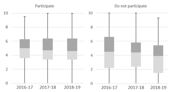 The sample of the study was composed of the students of the Tourism Degree enrolled in the subject of Economic Analysis of Tourism during the academic years 2016/2017, 2017/2018, and 2018/2019. The researchers recorded their score on the final exam and their participation in the game (Table 1). It should be noted that, in all academic courses, the percentage of students who participated in the game is around 60%.