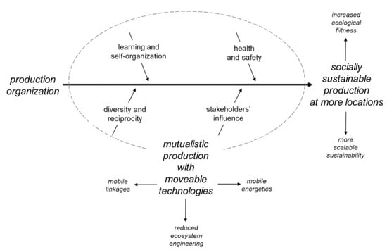 Internationally dominant production companies can be characterized as having world-class productivity, quality, etc., and it has been argued that world-class production can be sustainable [6,7,8]. However, the dominance of world-class manufacturers is not socially sustainable internationally because, by limiting where production is carried out, it brings the harms of limiting the generation of employment and provision of essential goods in many parts of the world [9,10,11]. Indeed, rather than current international relationships being socially sustainable, some have even been framed as neo-colonialism [12,13]. Hence, new perspectives are needed to improve analyses of international production’s social sustainability. Accordingly, in this paper, reference is made to ecology science in analyses of the social sustainability of international production. In particular, the social sustainability of international production with fixed production technologies is compared to the social sustainability of international production with moveable production technologies. In doing so, the following constructs from ecology science are applied: ecological fitness, ecosystem engineering, energetics, mobile linking organisms, mutualism, and scalable sustainability.
