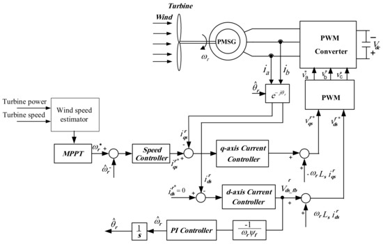- Yang, S.; Zhang, X.; Zhang, C.; Xie, Z.; Li, F. Sensorless control for pmsg in direct-drive wind turbines. In Proceedings of the IEEE International Symposium on Power Electronics for Distributed Generation Systems (PEDG), Hefei, China, 16–18 June 2010; pp. 81–84. [Google Scholar]