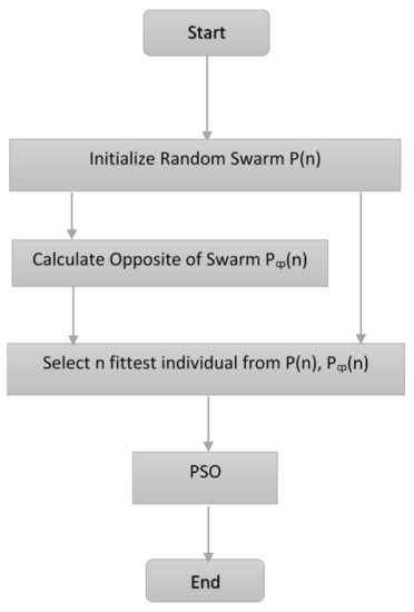 - Jabeen, H.; Baig, A.R. Opposition based particle swarm optimization (O-PSO). In Proceedings of the Genetic and Evolutionary Computation Conference (GECCO ‘09), Montreal, QC, Canada, 8–12 July 2009. [Google Scholar]
