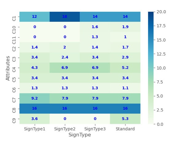The scores of the 11 evaluation indicators in the questionnaire survey were as follows. Tourists feel totally incomprehensible, very unsatisfied, very unreasonable, challenging to find, and ultimately not meeting the requirements equal 2 points. Tourists feel incomprehensible, unsatisfactory, unreasonable, and not meeting the requirements equal 4 points. Average feeling equals 6 points. The feeling of understandable, satisfactory, reasonable, accurate, easy to find, and can meet the requirements equal 8 points. If they feel completely understandable, very satisfactory, very reasonable, and meets all requirements then the question can get 10 points.
