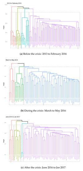 Among the many clustering algorithms, we used the agglomerative hierarchical clustering approach to identify clusters of words based on the TF-IDF matrix, where each row represents the weights of a word for different documents (tweets). The agglomerative version of hierarchical clustering assumes that each data point is an initial individual cluster. Then, in each iteration, the two closest (under some criterion) clusters are merged. One of the advantages of using agglomerative hierarchical clustering is that it is not required to specify the number of clusters manually beforehand, like in k-means. The clusters are naturally identified through the resulting dendrogram representation. In this work, we used Ward’s method, which minimizes the total within-cluster variance, as the criterion for merging clusters (words) during the clustering process.