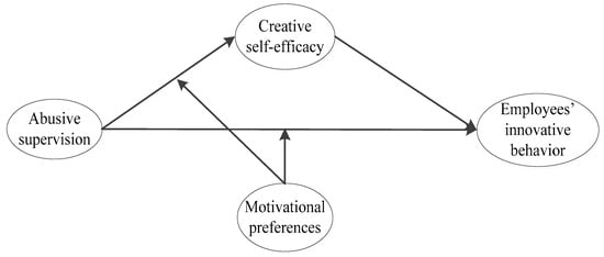 Finally, our research addresses the boundary condition by investigating the moderating role of employees’ motivational preference in the relationships between abusive supervision and innovative behavior as well as CSE. Motivation is what can impel individuals to do something [34] and may be categorized into intrinsic motivation and extrinsic motivation [38]. The former arises from the intrinsic value of the work (i.e., enjoyment, interest, satisfaction of curiosity, or personal challenge in the work), while the latter arises from other results outside of work (i.e., incentives, deadlines, surveillance, or dictates) [39]. Motivational preference is a relatively stable personality trait that varies from person to person [38] and reflects an individual’s preferences for or tendencies toward motivational factors and is relatively consistent across time and situations. Intrinsic motivational preference (IMP) and extrinsic motivational preference (EMP) could co-exist within an individual simultaneously [38,39]. Further, high motivational preference refers to a situation when IMP weighs more than EMP, while low motivational preference includes weightier EMP than IMP.
