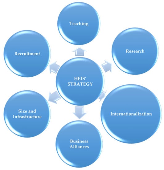 Dimensions of the higher education institutions’ (HEIs’) strategy. Source: Berisha, Mustafa, and Ismail [18] (p. 42).