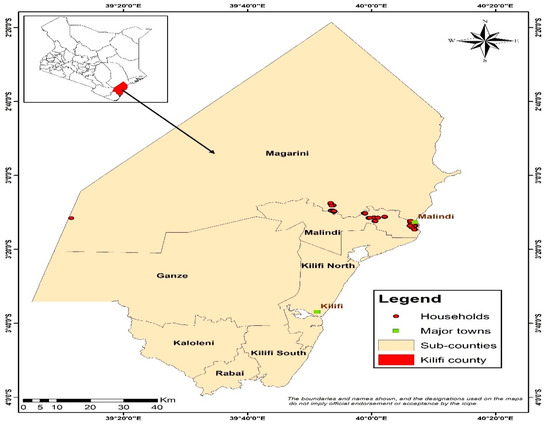 The study was conducted in Malindi in Kilifi County of Kenya (Figure 1). Subsistence agriculture fishing and local trading are the major economic activities in this area. Malaria prevalence currently averages 5% in the population. Inadequate access to health and sanitation services, combined with poverty, contribute to conditions that influence the risk of malaria and other diseases. Malaria is one of the critical causes of morbidity and mortality within the sub-county. A study by [16] reported that Malindi had one of the most successful programs implementing IVM interventions for malaria control in the country. The IVM interventions including the use of LLINs and environmental management have been implemented through a multi-stakeholder collaboration involving government departments, national and international research institutes, nongovernmental organizations (NGOs) and communities. A comprehensive description of the Malindi county is provided by [33].