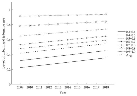 4.2. Evolution of the Level of Intensive Urban Land Use