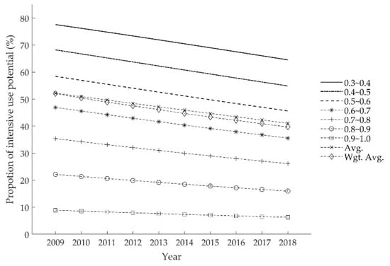 4.3. The Measurement and Analysis of the Potential for the Intensive Urban Land Use