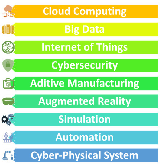 Industry 4.0 comprises nine key technologies responsible for its development (Figure 1). Cyber–physical systems (CPSs) are indispensable to Industry 4.0 owing to their contributions to improving the efficiency, operation transparency, and control capacity of production processes [11].