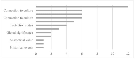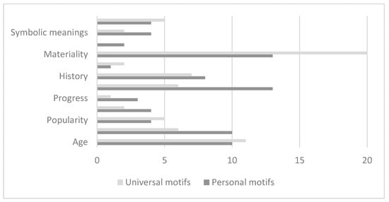To illustrate the universal and personal meanings the participants attached to a specific WCH in Lower Saxony, their arguments supporting their motif choices were categorized (Figure 3). It is important to note that the photos could be assigned to more than one category.