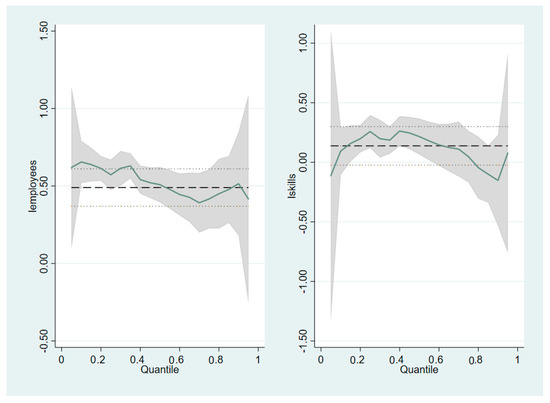 Secondly, we adopt a second measure that several scholars used to combat this bias: quantile regressions [64,65,66]. This type of regression performs conditional regressions for each quantile of the dependant variable. Quantile regression has the benefit of correcting a potential estimation bias derives from several companies’ weight in the sample. Standard regression techniques assume symmetric distributions, and if the data are skewed, the mean estimates of the coefficients are potentially biased.