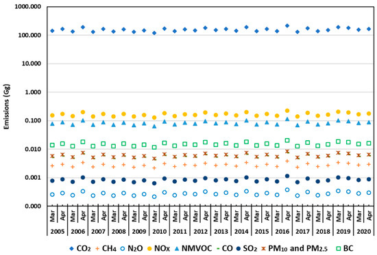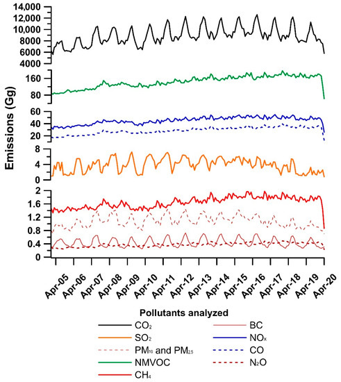 | How data were acquired | Data collection of the monthly amount and type of production for each sector, and estimation through different methods. In addition, specific emission factors were applied for each sector for the calculation of the different polluting species [9,12,13,27,29]. |