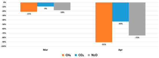 | Total emissions | March | –20% | –17% | –7% | –13% | –17% | –17% | –38% | –30% | –28% | –22% |