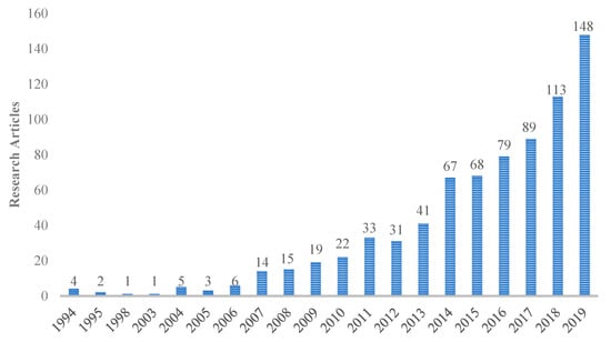 The results obtained were published between 1994 and 2020. The sample consisted of 846 articles published in 354 different sources, mostly journals. Of the works found, 752 were research articles, 58 book chapters, 31 early access, and five proceedings papers. The documents content included 2527 author’s keywords. A total of 1834 authors were identified and had published an average of 0.461 articles.