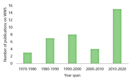 The year-wise distribution of publications that are specifically related to WWS emerged from the keyword search is shown in Figure 2. As shown in the figure, WWS has been under-researched for a long time, and there is an increasing trend on the WWS from the last decade.