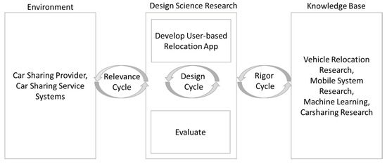 Furthermore, the findings of this study have implications for the field of sharing economy research. Carsharing is recognized as a prime example of the sharing economy [2]. However, areas of opportunity to support carsharing service processes are still in need of more research [1,2]. In this regard, the presented development process and artifact unravel how IT and IS facilitate the provision of sustainable sharing services and value co-creation in collaboration with customers. The position-dependent value of carsharing vehicles provides a rich environment for customer participation, e.g., sharing time and effort to increase the overall value of carsharing by improving the vehicle distribution cooperatively. An implemented user-based relocation system can increase the sustainability of the mobility service by reducing unnecessary relocation trips. Thus, this research also contributes to the area of sustainable mobility services.