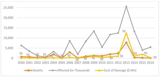 Human cost of natural disasters (Note: Natural disasters covered include drought, earthquakes, epidemics, floods, mass movements (dry and wet), storms, and volcanic eruptions [43]) in the Philippines, 2000–2016.