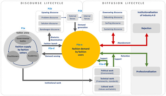 In sum, the ongoing increase in the Industry 4.0 discourse that started in 2014 indicates that the fashion discourse is indeed within the upswing phase. Thus, with reference to RQ1 and RQ3, the corresponding propositions can be given: