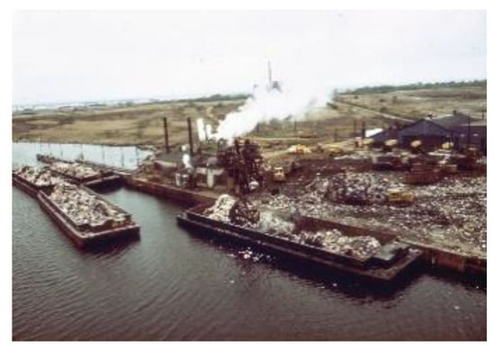 In the Fresh Kills Park, Staten Island, the landscape project produced a multi-purpose process, implementing a wetlands system in order to recover the landfill site. In 2001, to take advantage of the potential for the adaptive end use of the Fresh Kills Landfill, the City of New York, in association with others institutions, conducted an International Design Competition to foster the development of a master plan for transforming the landfill in the Park. The goal was to attract the best talent worldwide, to generate ideas and innovative park designs that would meet the needs of the city’s communities and respond to the natural and constructed history of the site. The Fresh Kills was a landfill covering 890 ha in Staten Island. The landfill opened in 1948 as a temporary landfill, but by 1955, it became the largest landfill in the world, and it remained so until its closure in 2001. At the peak of its operation, in 1986, Fresh Kills received 29,000 tons of residential waste per day (Figure 5).