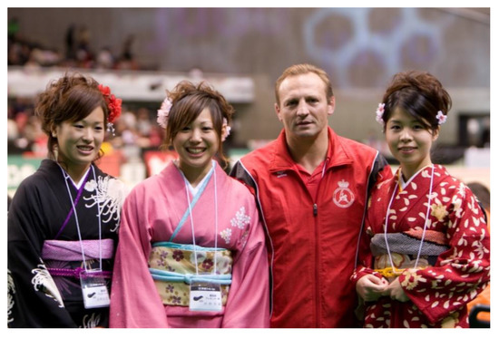 - Sieber, L.; Sieber, H. Japan reisealsGeschenkzum 30-jaerigen Jubilaum der JiuJitsu- und Karate-Schule Lothar Sieber [Travel to Japan as a gift for the 30th anniversary of the JiuJitsu and Karate School Lothar Sieber]. Budo-Info Ber. Mein. Inf. 2006, 1, 5–11. [Google Scholar]