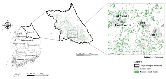 Site map of the study harvest unit located in the Gangwon region, Korea.