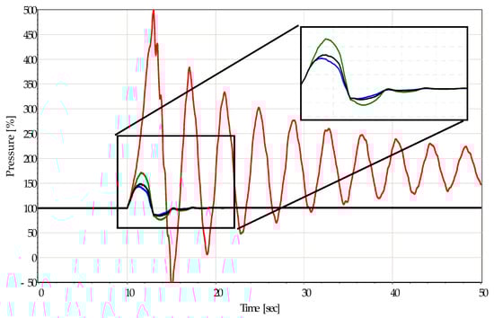 he rotor. In summary, the simulations showed that with a distributor closing law based on two-speed gradients in combination with the slow closing of the runner blade, an excellent behavior of the turbine would be obtained during the hydraulic transient. Thanks to the RDF12© governor, it was possible to implement the new laws on closing the distributor and the runner blade because the RDF12© governor foresees different operating dynamics (Figure 4). The overspeed is now significantly limited with respect to the max value previously experienced (123% vs. 128.7%, see Figure 2) and the lift of the rotor has been avoided. The RDF12© governor has been installed in 12 power plants owned by CVA; the biggest controlled hydroelectric group is in place in Valpelline (power 75 MVA), the smallest one is in Nus (power 9 MVA). Refer to [] for more details.