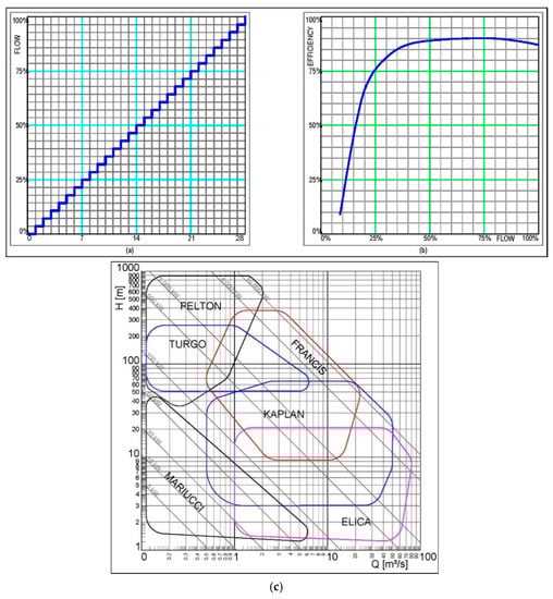 - energy recovery from drinking water distribution networks, non-powered dams and from the ecological flow of large dams []; this solution avoids new interruptions of the longitudinal connectivity of rivers, and some study cases are here presented (Section 9, Section 10, Section 11, Section 12 and Section 13);