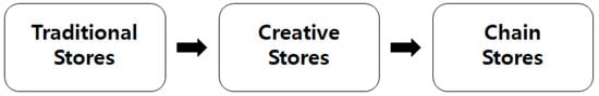 Gentrification is the first term used by Glass [12] to describe housing advancement by the middle class as they moved into residential areas of the workforce, together with the involuntary migration of indigenous workers. During periods of industrialization, the term gentrification was used among poor natives who did not own land as a concept similar to the phenomenon of extrapolation [13,14]. Generally, gentrification refers to a phenomenon of influx of upper-middle classes into existing underdeveloped areas, resulting in depression of the working class poor [15,16,17]. The term has been slightly redefined depending on the direction of research by country, scholars, and experts over time. Looking at differing definitions of gentrification by major scholars, the term commonly involves involuntary exclusion phenomena [3,14,18,19,20]. Among existing research, the works of Lees et al. [14] and Zukin et al. [3] look at gentrification from various aspects of land-use change, extending the issue to residential areas. All of these scholars also define gentrification as an involuntary expropriation of existing working-class residents or residents in underdeveloped areas by the middle class. The work of Zukin et al. [3] focuses on commercial gentrification, one phenomenon of gentrification, which results in small shops, boutiques with unique appeal, and chain stores forming “layers” of retail according to the size of capital. Alberto Rodríguez Barcón et al. [21] said that new businesses replace traditional local businesses in the city of Olzan, Spain. In the process, dilapidated and abandoned houses and traditional stores became fashionable pubs, hipster coffee shops, and creative workshops. In Shanghai, under the initiative of the government, historical dwellings were turned into upscale shopping, dining and culture areas, seeking economic revitalization through gentrification. However, the commercialization also caused involuntary extrusion of residents living in the area [22]. As in gentrification in general, commercial gentrification involves the “involuntary migration” phenomenon of small stores making way for upper-class franchises.