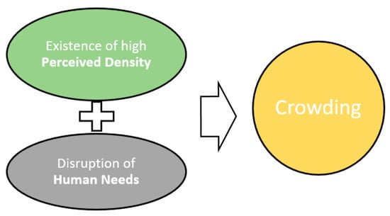 Although there are some housing standards for what is considered a crowded or overcrowded habitable room (e.g., respectively more than 1.5 and 3 inhabitants in USA according to the US Census Bureau []), the application of this concept to cities is much more fluid and left to people’s perceptions. In fact, the terms crowding and overcrowding are used synonymously to indicate a level of discomfort and potential hazards because of inadequate space availability. So obvious is crowding in urban areas today that it can be spotted virtually everywhere in cities and in various forms, from clogged road networks to jam-packed public transport systems and skies crowded out by towering buildings. It can also be sensed from annoying noise, stuffy air, unpleasant odour, and heat from cramped spaces such as rooms, lifts, and buses. Most city dwellers have experienced other forms of crowding that derive from the frustration of waiting in long lines for a place in quality facilities and services, e.g., hospitals, popular restaurants, theatres, shopping areas, or recreational places. Even worse, the threat of frequent outbreaks of contagious diseases, including pandemics such as COVID-19, further aggravates the public’s fear of crowded urban spaces.