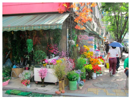 Such a natural urban morphology can often be seen in many traditional towns and cities that grow upon “private ownership, incremental development, and organic adjustments among different households” [] (p. 8). Figure 14 and Figure 15 demonstrate this in some of the chaotic, intensively mixed yet attractive and understandable streetscapes of Seoul, South Korea, while Figure 16 depicts this in Freiburg im Breisgau, Germany.