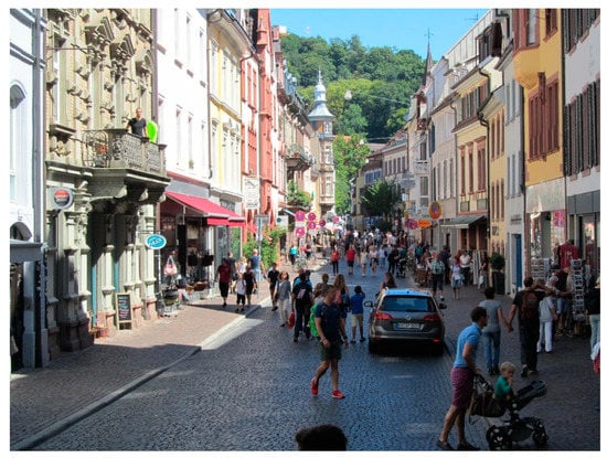 - Hass-Klau, C. Impact of pedestrianization and traffic calming on retailing: A review of the evidence from Germany and the UK. Transp. Pol. 1993, 1, 21–31. [Google Scholar] [CrossRef]