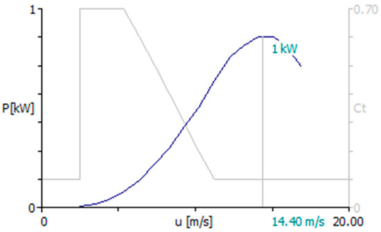 Power curve and thrust coefficient of the turbine of 1 kW.