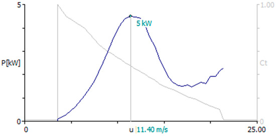 Power curve and thrust coefficient of the turbine of 5 kW.