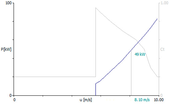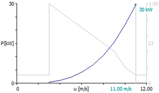Power curve and thrust coefficient of the turbine of 30 kW [14].