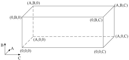 We assume that the prefab products are transported by homogeneous cargo holds. The sizes of a cargo hold in the three dimensions are , , and ; for simplicity, the three dimensions of a cargo hold are called the A-dimension, B-dimension, and C-dimension, as shown in Figure 1. The weight capacity of a cargo hold is . We have , , , , We try to load all the prefab products into as few cargo holds as possible. Note that if the cargo holds are heterogeneous, the proposed model and algorithm in the paper are still applicable after minimal revision.
