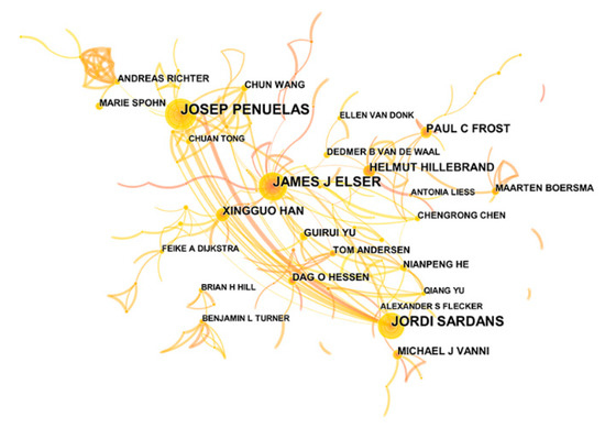 Table 2). In conclusion, J.J. Elser is currently recognized as the most active author in this field. Furthermore, we found very few authors and cited authors from China, which had few partners with other countries in the research area.